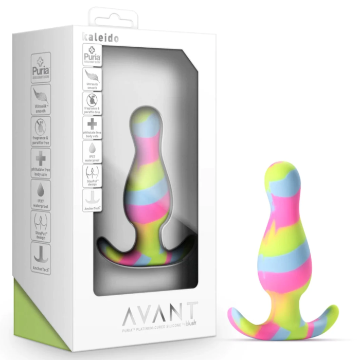 Kaleido est Ultrasilk ™ lisse et fabriqué en silicone Puria ™ durci au platine, ce qui le rend sans danger pour le corps, sans phtalate, sans latex et sans parfum. Il est également doté de la technologie StayPut™ pour s'assurer qu'il ne se détache pas pendant l'utilisation et qu'il reste bien en place dans le corps. La base AnchorTech™ maintient le plug confortable pour un port à long terme !