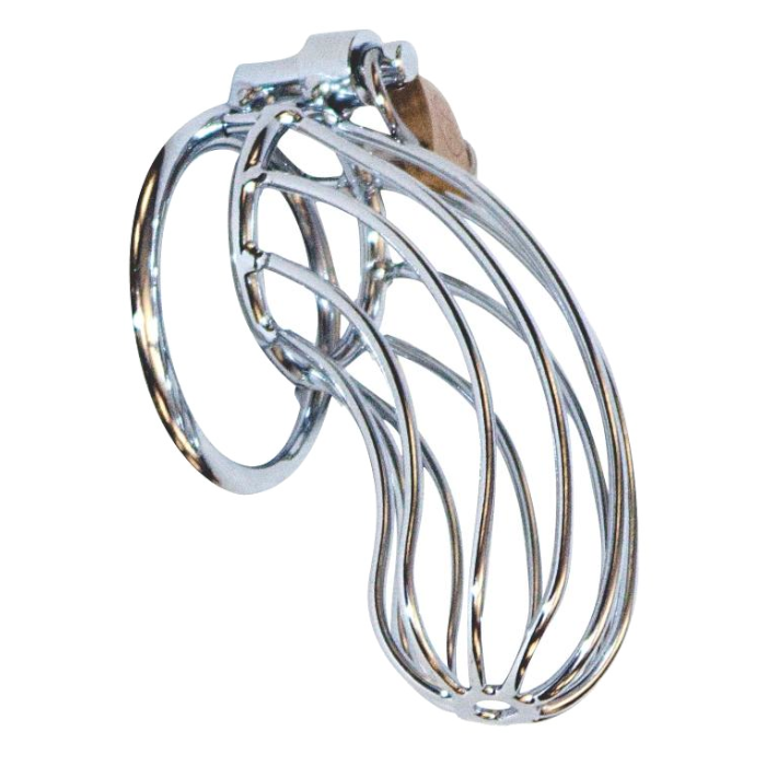 Le dispositif de chasteté Bird Cage est un dispositif de retenue en deux pièces en acier inoxydable. Un cockring qui se place derrière les testicules et une cage métallique qui renferme et contient le pénis. La cage s'installe en plaçant les testicules à travers l'anneau afin qu'il se place derrière eux. Ensuite, le pénis est placé à l'intérieur de la cage métallique. Trois broches relient la cage à l'anneau. La plus grande goupille a un trou pour placer le verrou, qui est inclus avec le l'ensemble. La cage comporte un trou à la fin pour la miction. Tirer sur la section de la cage aura tendance à étirer les testicules.