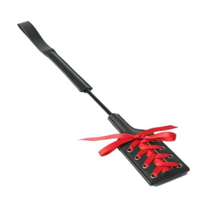 Un côté est doux à fouetter et à caresser. L'autre côté présente un tissu en dentelle rouge en peluche, noué comme un corset avec un nœud.