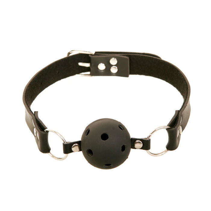 Prenez le contrôle de vos fantasmes ce soir avec le bâillon-boule fantasme fétiche respirable. Conçu pour le confort, ce bâillon-boule ferme et non toxique comporte des trous de respiration pour votre soumis volontaire. La lanière en cuir de haute qualité mesure 25 cm de longueur. Il suffit de régler la boucle pour un ajustement parfait.