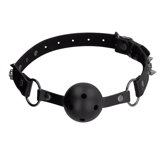 Remplissez la bouche de votre amour avec ce GAG RESPIRANT lors de votre prochaine session BDSM. Idéal pour les esclaves en formation, ce bâillon en silicone s'adapte parfaitement à la bouche de votre soumis afin de le garder au calme. La balle a quatre trous de respiration pour plus de sécurité et plus de confort. Un serre-tête de qualité orné de crânes et de pointes facilite la fixation du bâillon et le réglage de la taille à l'aide d'un fermoir pratique. Le bâillon de balle est sans odeur et sans goût.