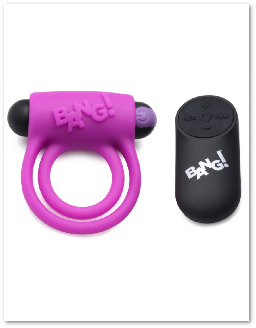 Améliorez votre performance avec ce combo anneau en silicone velouté et balle vibrante ! Cet anneau pénien de Bang ! dispose de deux anneaux extensibles, un pour votre tige et un pour vos testicules, pour augmenter la dureté et la durée de l'érection. Cet anneau en silicone puissant présente également une vibration de balle intense stratégiquement placée pour stimuler le clitoris de votre partenaire à chaque poussée !